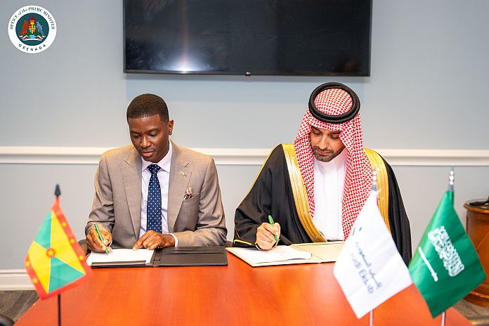 Signatories to the MoU are Yazeed Saleh Alyahya, chief executive officer, Saudi Eksab and Dickon Amiss Thomas Mitchell, prime minister of Grenada.