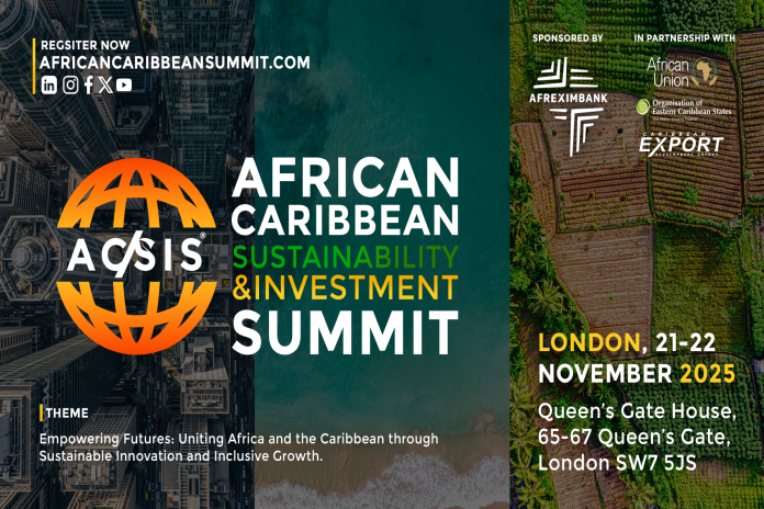 LONDON, England – The African Caribbean Sustainability & Investment Summit (ACSIS) announced that the African Export-Import Bank (Afreximbank) has officially signed on as Diamond Sponsor for ACSIS 2025, taking place on Friday 21 – Saturday 22 November 2025 at MPW Queens Gate House, London.
