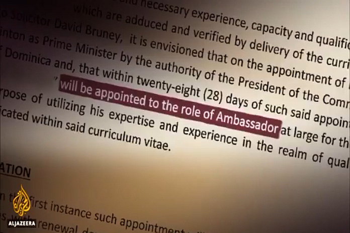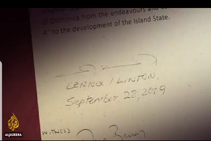 ROSEAU, Dominica – Besides Sam Raphael evidence that the United Workers Party (UWP) while in opposition in 2004, received millions of dollars (US$1.55 million – EC$4.185 million) from six Europeans, “in exchange for [promise of] diplomatic positions” and opposition leader Lennox Linton confession that Raphael had delivered a “body blow” to him and his UWP, Al Jazeera’s documentary exposed once again, Linton’s “illicit” pursuit of campaign financing, by means of signed document promising diplomatic passport and ambassador appointments in exchange of USD$400,000 ahead of the December 6, general election.