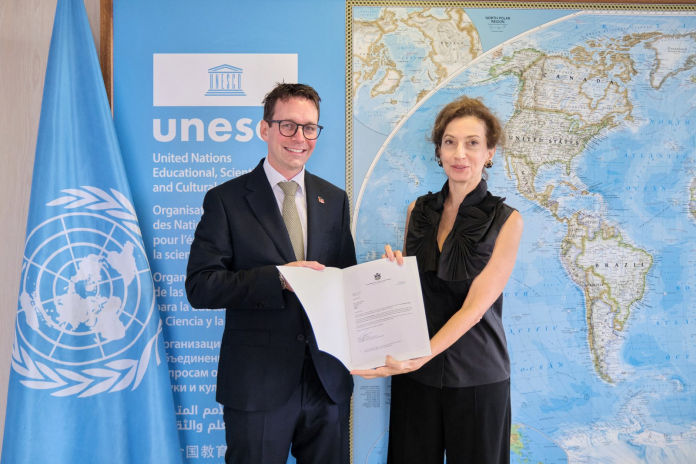 ANTIGUA / FRANCE – On 2 September 2025, UNESCO director-general Audrey Azoulay welcomed Timothée Bauer, the new permanent delegate of Antigua and Barbuda to UNESCO, during the official credentials presentation ceremony held at UNESCO Headquarters in Paris.