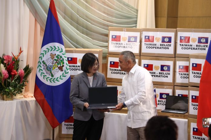 During the ceremony, president Tsai presented prime minister Briceño with a donation of 5,000 laptops from Taiwanese manufacturers to assist Belize in improving learning resources for vulnerable groups such as children and women in rural areas.