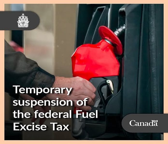 OTTAWA, Canada – Prime Minister, Mark Carney, has announced that the government is temporarily suspending the federal Fuel Excise Tax on gasoline and diesel across Canada. Starting April 20, 2026, Canada’s new government will suspend the full amount of the tax on gasoline and diesel until September 7, 2026. This is expected to reduce Canadians’ bills at the gas station by 10 cents per litre on regular gasoline and 4 cents on diesel. The government is also temporarily suspending the federal Fuel Excise Tax on aviation fuels.