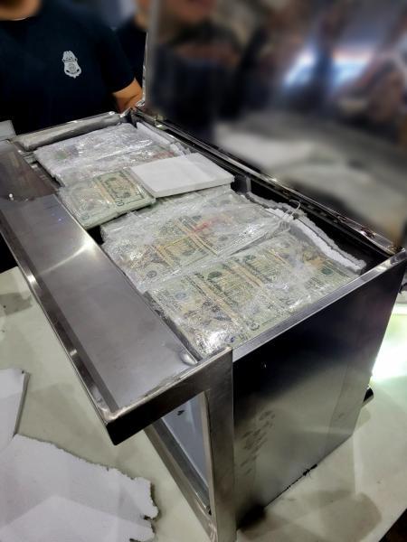 The K-9 alerted again to two boxes labelled “dining table.” Inside CBP Officers found currency amounting to $1,000,100.