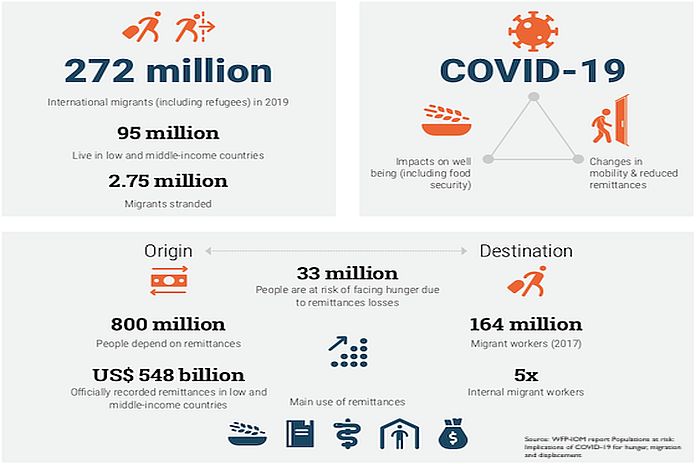 ROME, Italy – Global hunger and population displacement, which were already at record levels when COVID-19 struck, could “surge” as migrants and those reliant on a dwindling flow of remittances desperately seek work to support their families, a new UN report has warned.