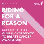 On Saturday, October 15, 2022, CycleBar studios around the world at participating locations are hosting CycleGives rides that will be open to the public. It is $15 to reserve a bike, and 100% of the proceeds will be donated to Susan G. Komen®.