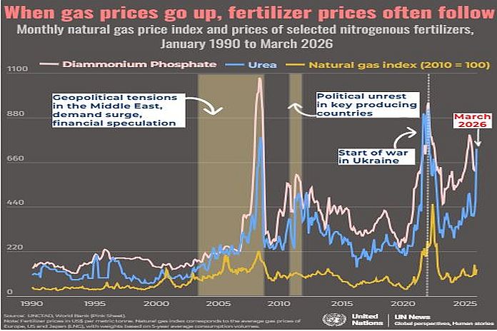 Farmers facing higher costs and uncertain access to fertilisers may reduce input use, plant less or shift crops – decisions that could lower yields and tighten food supplies in the months ahead.