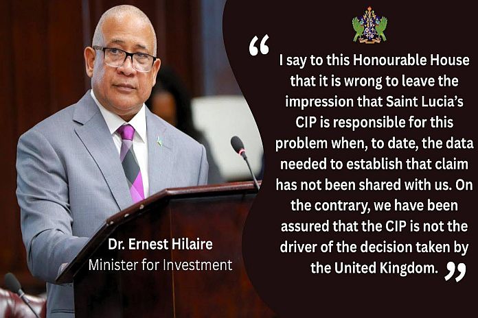 “Some would genuinely establish that causal link, and others word out of political malice accentuate the words of the home office who serve their political purpose. Mr Speaker, I say to this honorable house that it is wrong to leave the impression that St Lucia’s CIP is responsible for this problem when to date the data needed to establish that claim has not been shared with us. On the contrary, we have been assured that the CIP is not the driver of the decision taken by the United Kingdom.”