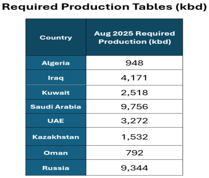 In view of a steady global economic outlook and current healthy market fundamentals, as reflected in the low oil inventories, and in accordance with the decision agreed upon on 5 December 2024 to start a gradual and flexible return of the 2.2 million barrels per day voluntary adjustments starting from 1 April 2025, the eight participating countries will implement a production adjustment of 548 thousand barrels per day in August 2025 from July 2025 required production level. This is equivalent to four monthly increments as detailed in the table below. The gradual increases may be paused or reversed, subject to evolving market conditions. This flexibility will allow the group to continue to support oil market stability.