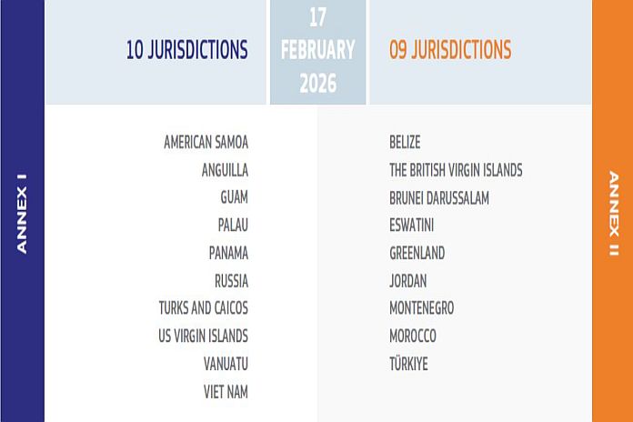As a result, Annex II currently includes nine jurisdictions: Belize, British Virgin Islands, Brunei Darussalam, Eswatini, Greenland, Jordan, Montenegro, Morocco, and Türkiye. The EU will closely monitor these commitments.