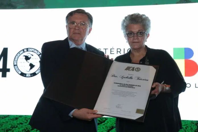BELEM DO PARA, Brazil, (IICA) – Renowned biologist Izabella Teixeira, former minister of the environment of Brazil, who has had a distinguished career in international negotiations related to the relationship between production activities, natural resource management and climate, was recognised as a Goodwill ambassador of the Inter-American Institute for Cooperation on Agriculture (IICA).