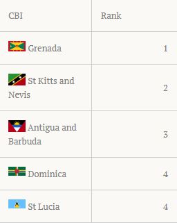 Using the Points Based Scoring (PBS) model of 210 points, Grenada secured the first spot with 151.3 (PBS) points which examined 31 indicators of CBI programmes.