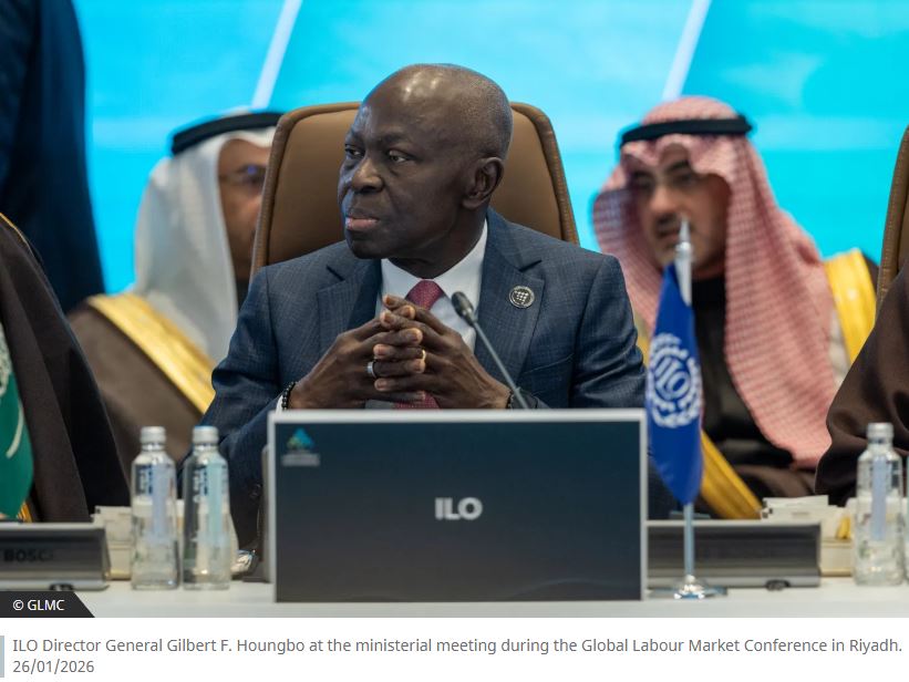 RIYADH (ILO News) – International Labour Organization (ILO) director-general Gilbert F. Houngbo concluded his participation in the third edition of the Global Labour Market Conference in Riyadh, Saudi Arabia, with a call for coordinated, human-centred and rights-based policies to address profound transformations reshaping labour markets worldwide.