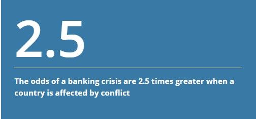 We find that the odds of a banking crisis are 2.5 times greater when a country is affected by a conflict.