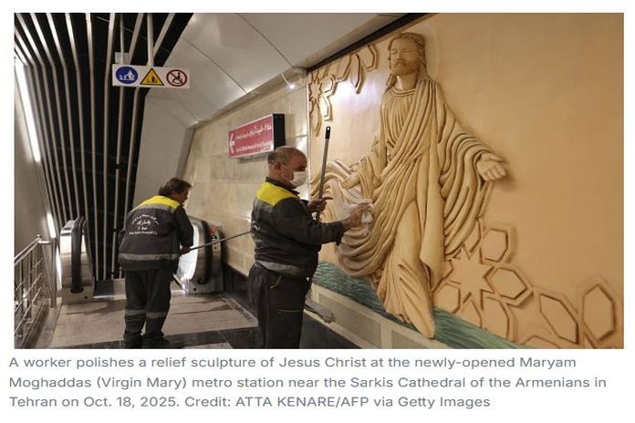 This past week, social media was flooded with images showing a new metro station in Tehran called the “Virgin Mary” station. The photos went viral, sparking widespread debate among those who hail it as a rare gesture of openness, those who dismiss it as a staged act to polish the regime’s image, and others who simply wonder if it even exists.