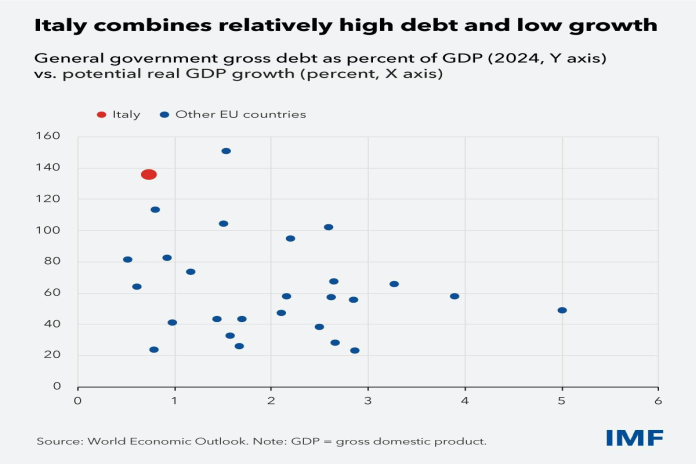 The main regional constraint is a lack of effective market size due to incomplete intra-EU integration. European markets are still fragmented due to differences in regulation across countries, preventing true integration and expansion. That’s why it’s important to deepen the single market and the capital markets union. Such efforts would also reinforce national reforms and help diversify financing options. EU-wide initiatives on artificial intelligence and other frontier technologies could also help close innovation gaps, and European labor mobility reforms could help narrow the skills gap. The combined benefits of national and regional action can be instrumental in lifting Italy’s growth outlook.