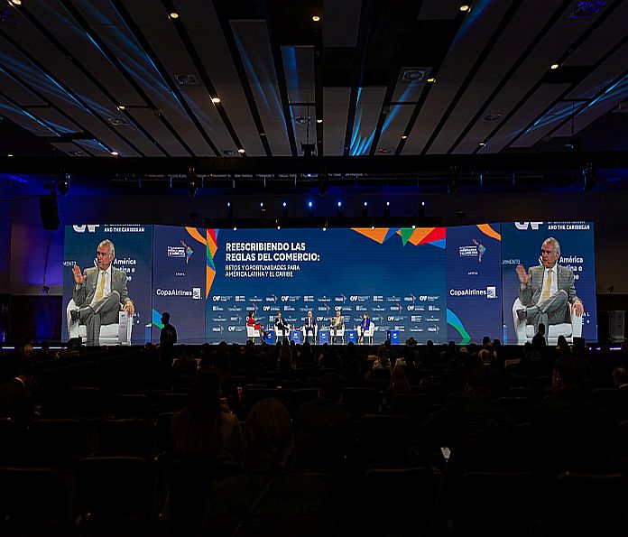 José Manuel Salazar-Xirinachs spoke on a panel entitled Rewriting the Rules of Trade: Challenges and Opportunities for Latin America and the Caribbean, along with Amparo López Senovilla, secretary of state for trade of Spain; Gonzalo Gutiérrez, secretary general of the Andean Community; and Víctor Orlando Bisonó, minister of industry, trade and MSMEs of the Dominican Republic (2020–2026) and current minister of housing, habitat and buildings. The segment was moderated by Gabriela Frías, journalist and presenter for news channel CNN en Español.