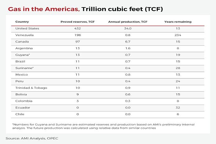 Trinidad’s decline, coupled with Peru’s focus on the domestic market, creates opportunities for new players to enter the LNG export market. Guyana and Suriname, the emerging superstars of the region, could have 13.2 and 10.8 Tcf (trillion cubic feet) of natural gas reserves, respectively, based on AMI’s preliminary estimates. Their miniscule local demand means that there is plenty of excess gas that can be exported via ships or pipelines. Both countries have direct routes to Western Europe and Northern Brazil.