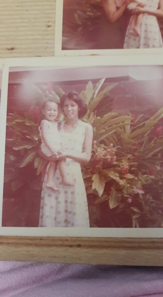 “I remember her dress…a light blue kind of chiffon dress with a detailed bodice? I think. I was young…but I remember there was a wedding she was preparing for,” Stephanie recalled. In an old photograph the slim adult Juliet tightly holds her smiling baby sister, Stephanie, against a lush background of brilliant red ginger lilies.