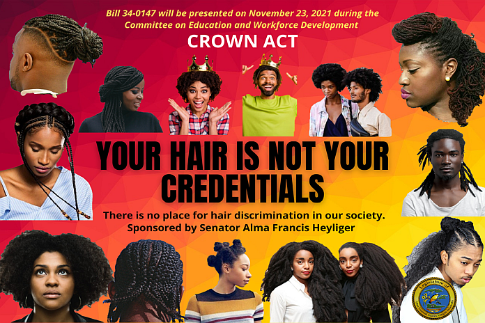 “For far too long we have witnessed how racial discrimination insidiously creeps into our institutions and denies advancement opportunities on the basis of racial prejudice,” said Sen. Francis Heyliger. “Excluding an individual from gainful employment or education on the basis of hair texture simply provides an alternative route for racial discrimination. The enactment of the Virgin Islands CROWN Act closes that loophole in racial inequality here in the Territory.”
