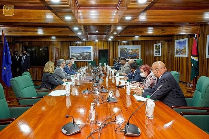 Involved in the meeting on the EU’s side were not only the EU ambassador to Guyana, Ernesto Araújo, but the EU’s deputy management director for the Americas, Javier Pérez.