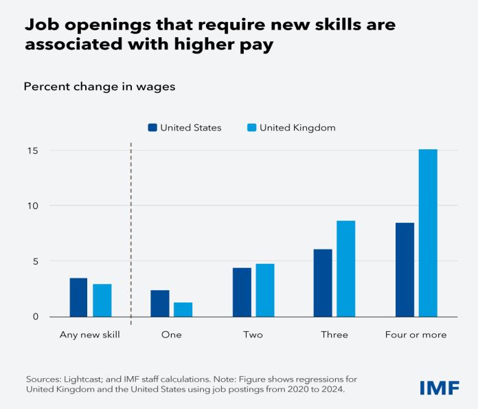 This wage bump can boost the local economy, our research shows. Workers with more money in their pockets spend more at local businesses, which in turn hire more staff to meet demand. In the US, for example, regions with higher adoption of new skills saw employment rise by 1.3 percent for each 1 percentage point increase in the share of job postings that require new skills over the past decade.