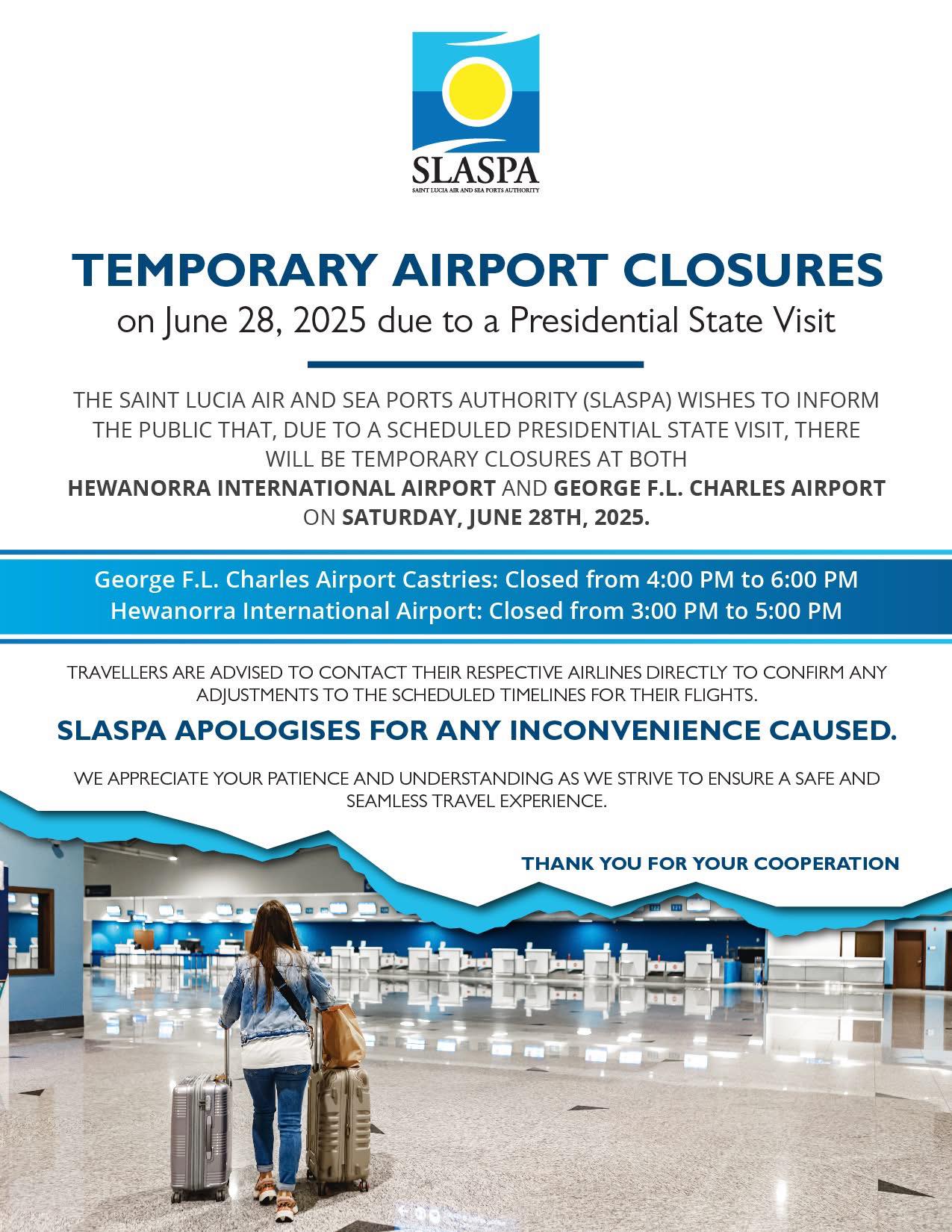 - Saint Lucia Air and Sea Ports Authority issues temporary airport closures