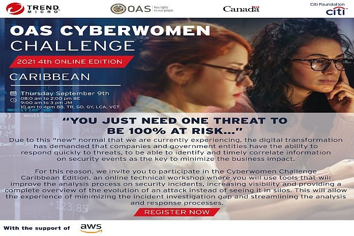 BELIZE, Belmopan – CICTE OAS has extended an invite to Belize to participate in the English Edition of the Cyberwomen Challenge that will take place on September 9th, 2021 from 8:00 am to 2:00 pm (local time). This activity is being organized by the OAS/CICTE Cybersecurity Program and Trend Micro to encourage more women to strengthen their technical skills and inspire them to enter the cybersecurity industry.