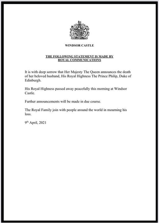 “It was with deep sadness that I learned of the passing of The Duke of Edinburgh.
