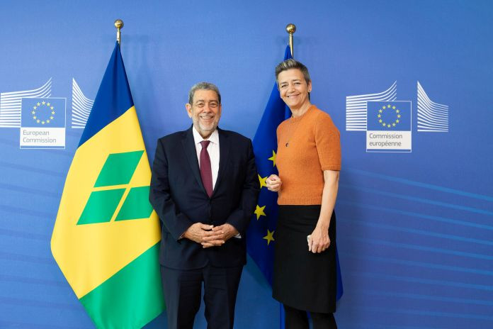 Ralph Gonsalves Prime Minister of Saint Vincent and the Grenadines and Executive Vice President of the European Commission in charge of Europe fit for the Digital Age and Commissioner for Competition, Margrethe Vestager