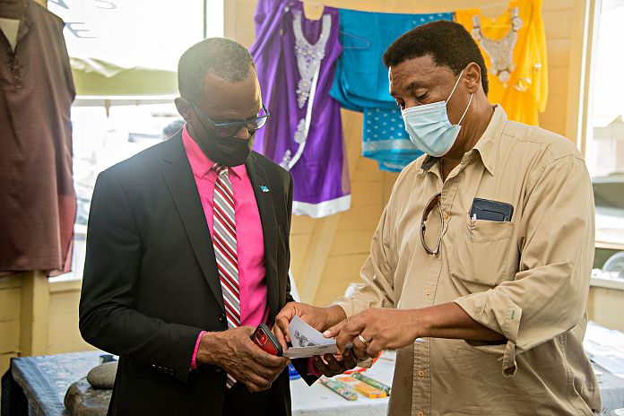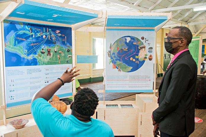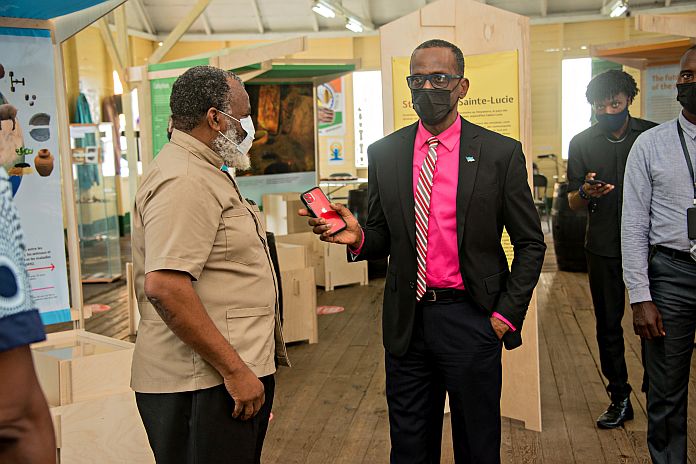 Caribbean Ties volunteer, Kevin Jn Baptiste, and Prime Minister of Saint Lucia, Philip J Pierre review the exhibits. [Bill Mortley Photography] The exhibition is open to the general public from 8.00 am till 5.00 pm each day and ends on August 31.