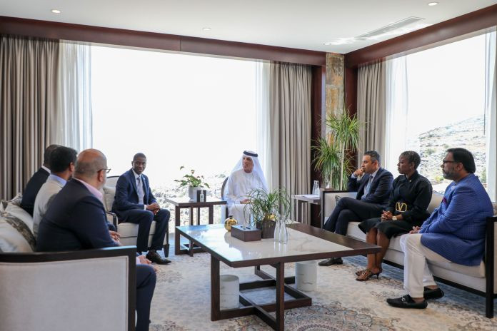 RAS AL KHAIMAH, UAE, (WAM) – H.H. Sheikh Saud bin Saqr Al Qasimi, Supreme Council Member and Ruler of Ras Al Khaimah, received on Saturday, Dickon Mitchell, prime minister of Grenada, who is currently visiting the UAE, in his Resthouse in Jebel Jais.