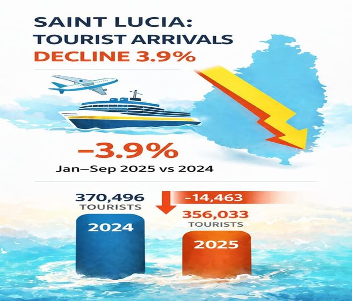CASTRIES, St Lucia –ย ๐—ฆ๐—ฎ๐—ถ๐—ป๐˜ ๐—Ÿ๐˜‚๐—ฐ๐—ถ๐—ฎโ€™๐˜€ ๐˜๐—ผ๐˜‚๐—ฟ๐—ถ๐˜€๐—บ ๐˜€๐—ฒ๐—ฐ๐˜๐—ผ๐—ฟ ๐—ถ๐˜€ ๐—ณ๐—ฎ๐—น๐˜๐—ฒ๐—ฟ๐—ถ๐—ป๐—ด ๐—ฎ๐˜ ๐—ฎ ๐˜๐—ถ๐—บ๐—ฒ ๐˜„๐—ต๐—ฒ๐—ป ๐—บ๐˜‚๐—ฐ๐—ต ๐—ผ๐—ณ ๐˜๐—ต๐—ฒ ๐—–๐—ฎ๐—ฟ๐—ถ๐—ฏ๐—ฏ๐—ฒ๐—ฎ๐—ป is recovering. Data released by the Eastern Caribbean Central Bank in December 2025 show that total visitor arrivals fell by ๐Ÿฏ.๐Ÿต percent between ๐—๐—ฎ๐—ป๐˜‚๐—ฎ๐—ฟ๐˜† ๐—ฎ๐—ป๐—ฑ ๐—ฆ๐—ฒ๐—ฝ๐˜๐—ฒ๐—บ๐—ฏ๐—ฒ๐—ฟ, equivalent to ๐Ÿญ๐Ÿฐ,๐Ÿฐ๐Ÿฒ๐Ÿฏ fewer visitors than in the same period a year earlier. The IMF has described this as a ๐—ฐ๐—น๐—ฒ๐—ฎ๐—ฟ ๐˜‚๐—ป๐—ฑ๐—ฒ๐—ฟ๐—ฝ๐—ฒ๐—ฟ๐—ณ๐—ผ๐—ฟ๐—บ๐—ฎ๐—ป๐—ฐ๐—ฒ ๐—ฟ๐—ฒ๐—น๐—ฎ๐˜๐—ถ๐˜ƒ๐—ฒ ๐˜๐—ผ ๐—ฟ๐—ฒ๐—ด๐—ถ๐—ผ๐—ป๐—ฎ๐—น ๐—ฝ๐—ฒ๐—ฒ๐—ฟ๐˜€, ๐—ฎ๐˜๐˜๐—ฟ๐—ถ๐—ฏ๐˜‚๐˜๐—ถ๐—ป๐—ด ๐—ถ๐˜ ๐—ฝ๐—ฟ๐—ถ๐—บ๐—ฎ๐—ฟ๐—ถ๐—น๐˜† ๐˜๐—ผ ๐—ต๐—ผ๐˜๐—ฒ๐—น ๐—ฐ๐—น๐—ผ๐˜€๐˜‚๐—ฟ๐—ฒ๐˜€ ๐—ฎ๐—ป๐—ฑ ๐—ฟ๐—ฒ๐—ฑ๐˜‚๐—ฐ๐—ฒ๐—ฑ ๐—ฎ๐—ถ๐—ฟ๐—น๐—ถ๐—ณ๐˜ ๐—ถ๐—ป ๐Ÿฎ๐Ÿฌ๐Ÿฎ๐Ÿฑ. Yet the data suggest the weakness is broader and more structural in nature.
