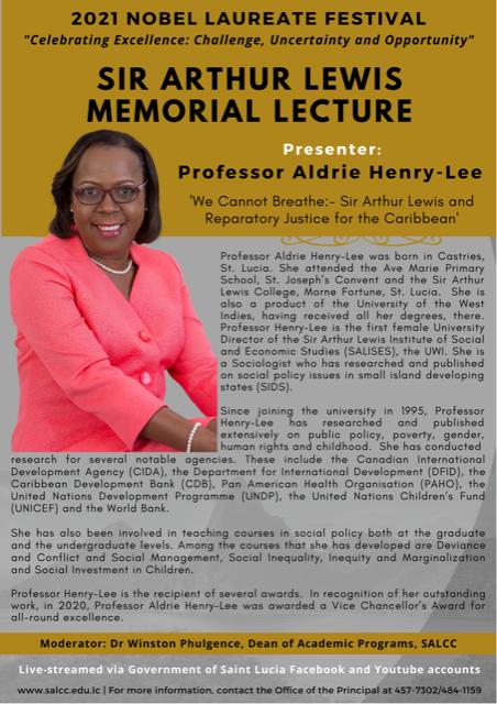 Professor Aldrie Henry-Lee will present the Sir Arthur Lewis memorial lecture January 21, at 07:00 pm.