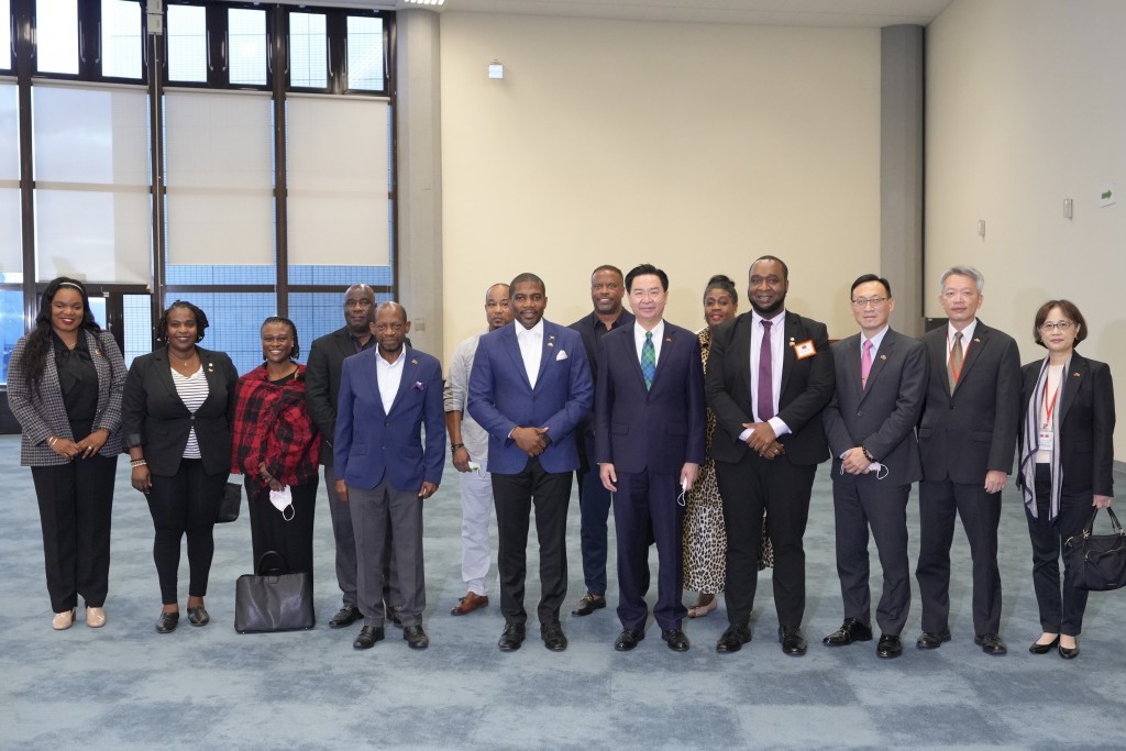 Prime minister Drew was met upon arrival by MOFA minister Jaushieh Joseph Wu at Taiwan Taoyuan International Airport in the northern city. The prime minister was accompanied by Denzil Douglas, minister of foreign affairs; Mark A. G. Brantley, premier of Nevis; Joyelle Clarke, minister of sustainable development, climate action, constituency empowerment and environment; and Isalean Phillip, minister for youth empowerment, aging and disabilities, social development and gender affairs.