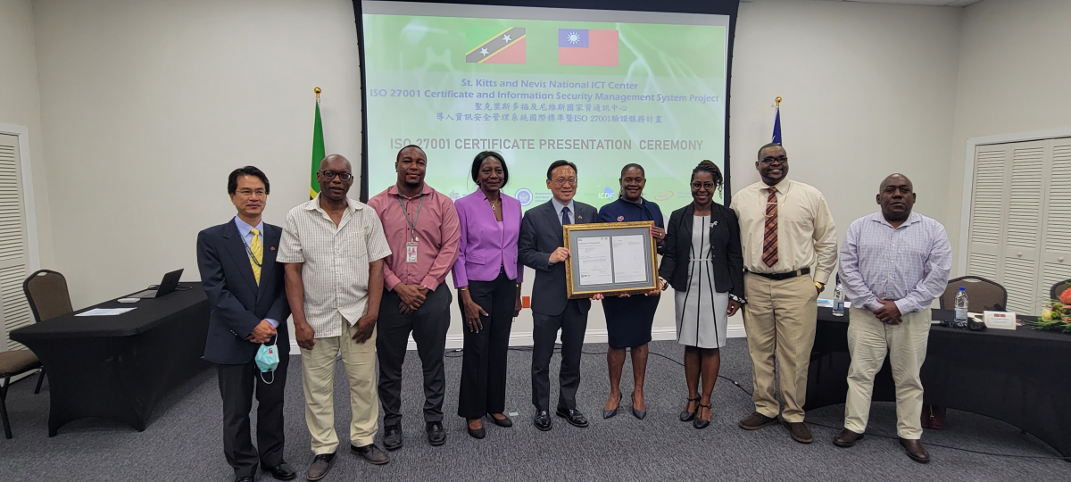 Following St Vincent and the Grenadines, Saint Lucia, Belize, St Kitts and Nevis has become the fourth partner country assisted by Taiwan in introducing a mechanism for information security and acquiring the ISO 27001 international standard for authentication. This fully demonstrates the concrete achievements and effectiveness of our ICT assistance.