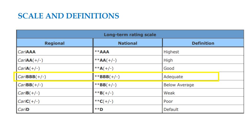 CariCRIS ratings