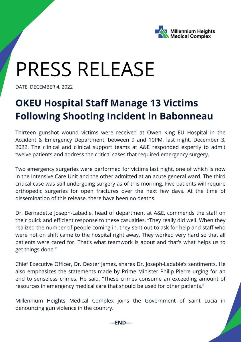 - Three people hospitalized after Dennery gun violence – Thursday, December 1, 2022