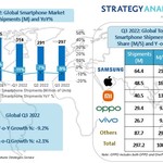 BOSTON–(BUSINESS WIRE)–According to new research from Strategy Analytics, global smartphone shipments fell -9% YoY to 297 million units in Q3 2022. Samsung topped the global smartphone market with a healthy 22% share in Q3 2022. Apple ranked the second place with 16% share, the highest third quarter performance over the past twelve years. Xiaomi, OPPO (including OnePlus) and vivo stayed in the top five list.