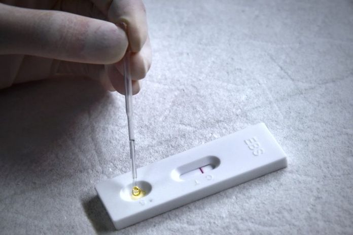 The kit’s rapid screening reagent can determine whether a person has been infected with the coronavirus within ten-minutes. Similar to a pregnancy test, if a person is positive, two lines will appear in the test window.