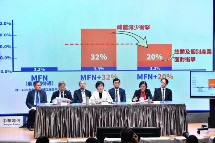 Cheng went on to elaborate on calculations for the current tariff, that is, existing most-favored nation duties plus a 20 percent reciprocal rate. Current industrial exports to the US reached US$112.9 billion and agricultural exports topped US$890 million, with average pre-existing tariffs of 3.1 percent and 5 percent, respectively. She added that a dedicated online response site will be set up for public inquiries.