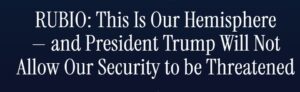 WASHINGTON, USA – Secretary Rubio underscored president Donald J. Trump’s ironclad commitment to preventing the Western Hemisphere from becoming a safe haven for drug traffickers, Iranian proxies, or hostile regimes that endanger our national security — declaring the days of weakness are over and the US will deploy every tool to eradicate these threats from our backyard.