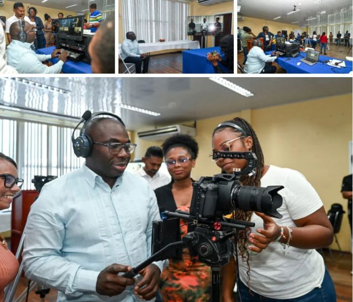 The minister’s hands-on involvement, balancing lighting rigs, framing shots and editing raw footage, became the highlight of the nine-week program’s latest practical session, which is being held at the Racquet Centre Boardroom, Thomas Lands, Georgetown.