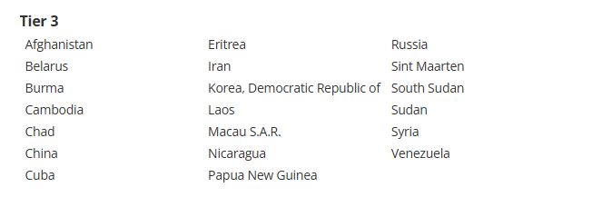 Tier 3: Countries whose governments do not fully meet the TVPA’s minimum standards and are not making significant efforts to do so.