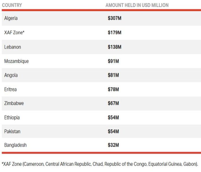 Ten countries across Africa, the Middle East, and South Asia account for 89 percent of the total blocked funds, amounting to USD 1.08 billion.