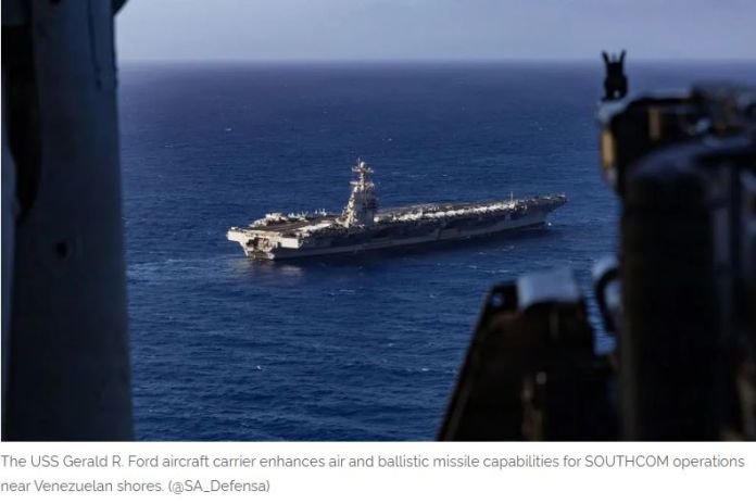 CARACAS, (venezuelanalysis.com) – The USS Gerald R. Ford Carrier Strike Group arrived Tuesday in the US Southern Command (SOUTHCOM)’s area of responsibility, significantly increasing US forces in the region.