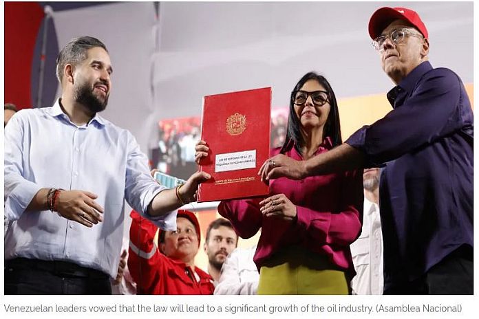 National Assembly president Jorge Rodríguez hailed the vote a “historic day” and claimed the new bill will lead oil production to “skyrocket.”