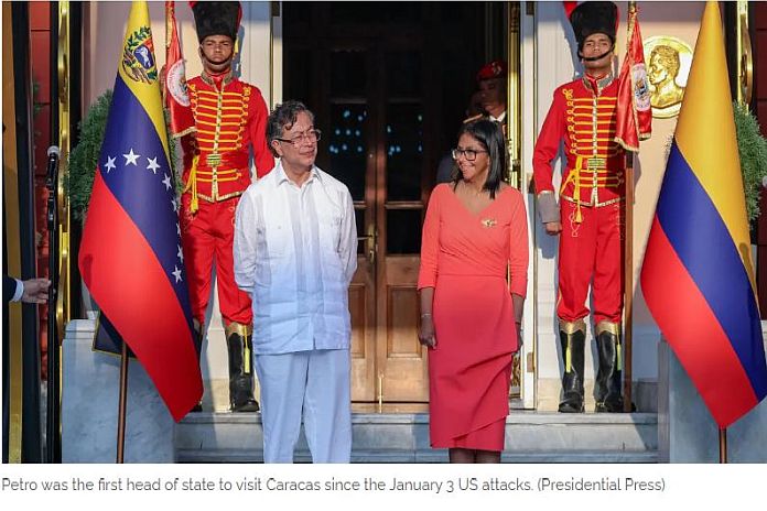 CARACAS, Venezuela, (venezuelanalysis.com) – Venezuela’s acting president Delcy Rodríguez hosted Colombian president Gustavo Petro for bilateral talks in Caracas on Friday. The meeting marked the first official visit by a head of state since the kidnapping of President Nicolás Maduro during a US military operation on January 3.
