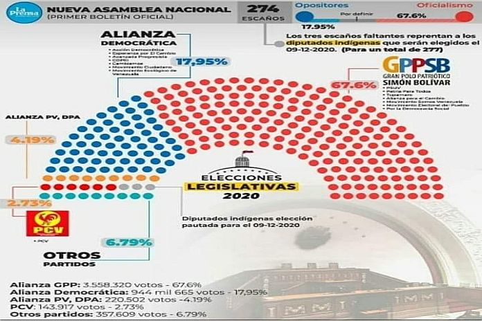 Preliminary results point to the PSUV-GPP coalition victory with 67.6 percent of the votes for Venezuela’s National Assembly, and a new session to commence January 5, 2021.