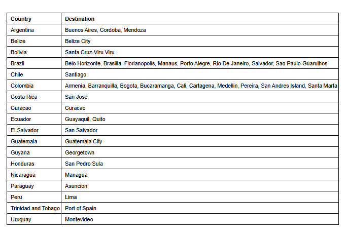 “Building on the announcement of our new direct service from Calgary to Panama City, this new interline partnership agreement will increase access to destinations across Central and South America for Canadian travellers,” said John Weatherill, WestJet executive vice-president and chief commercial officer. “We remain focused on connecting guests to the world’s most popular sun and leisure destinations this winter, while also meeting the needs of business travellers by continuing to provide convenient access to some of South America’s largest markets.”