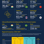 - India remains the undisputed RTP leader, with a staggering 89.5B transactions in 2022 and a YoY growth rate of 76.8%. India accounted for 46% of all global real-time transactions in 2022.